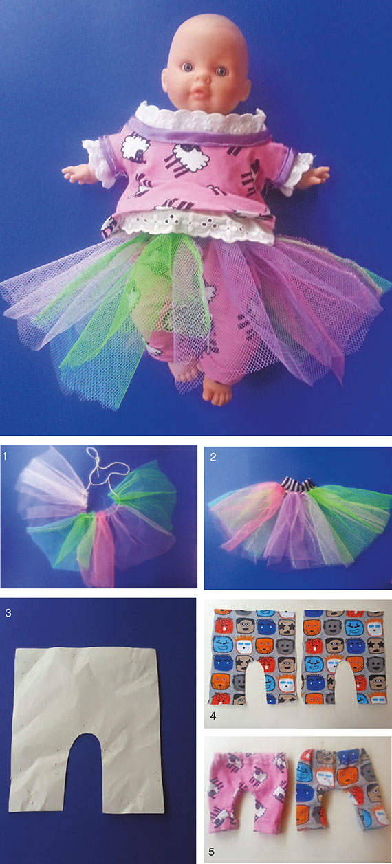 Thigtsen: 3 Jag mätte längd och bredd på dockan och gjorde därefter det enkla mönstret.